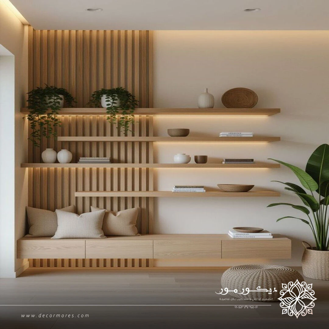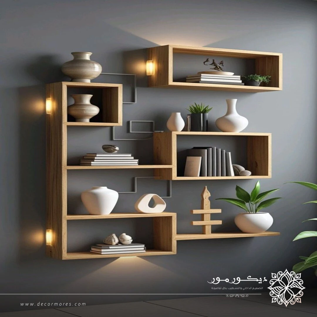 ديكور رفوف خشب بسيطة بمكة