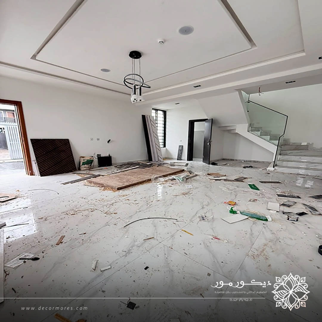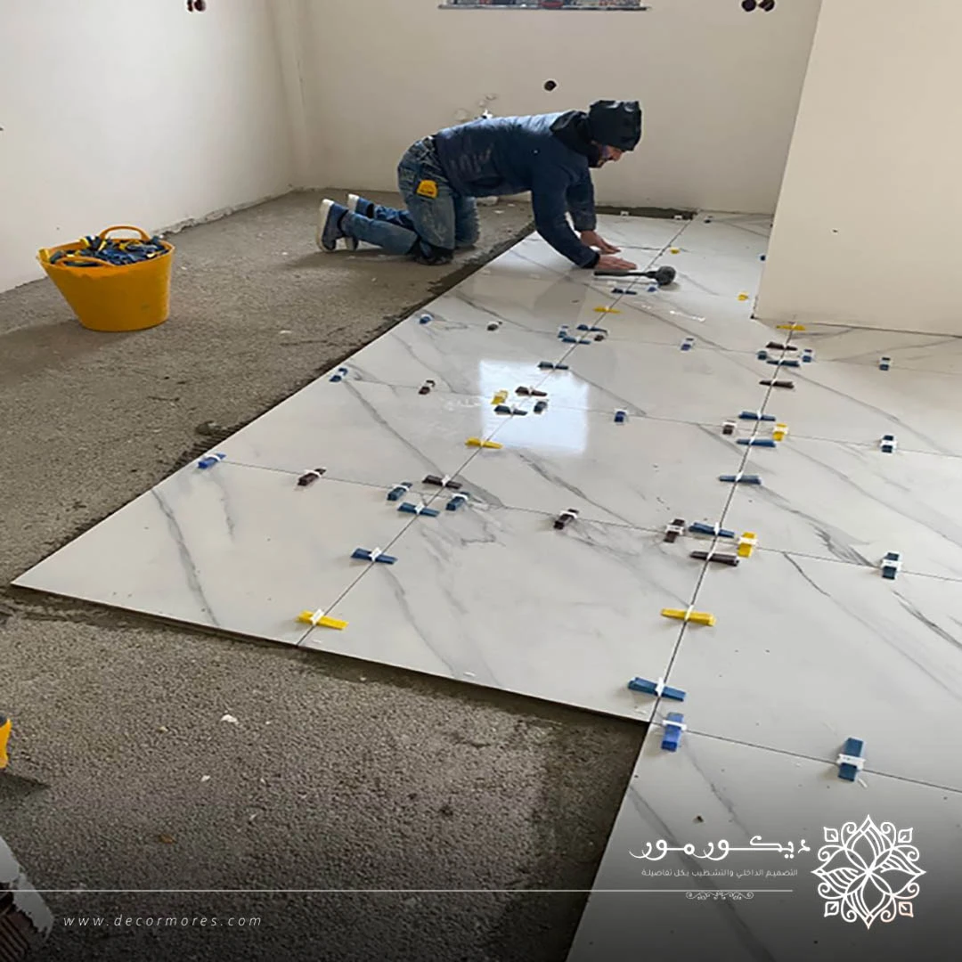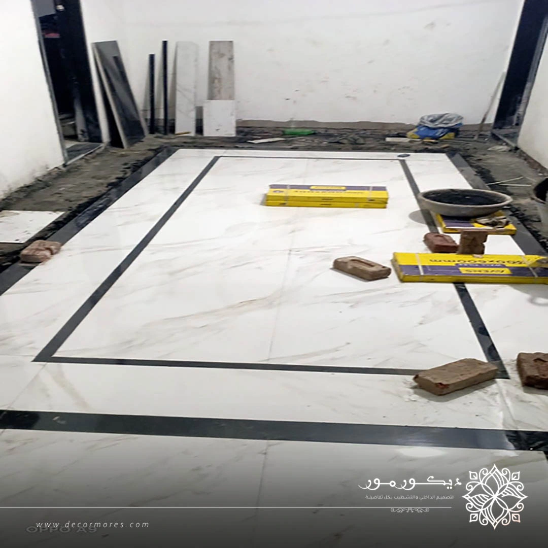 - اختيار نوع الأرضيات المناسبة لكل مساحة سواء كانت رخام أو بورسلان أو باركيه.
