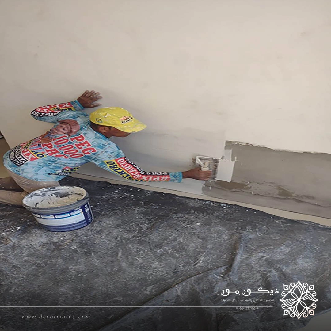 - تنفيذ اللياسة والمعالجة الهندسية للجدران