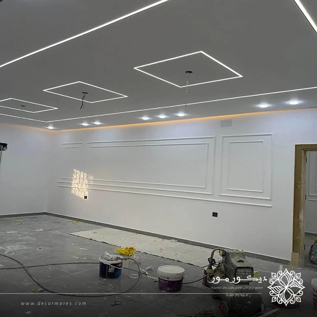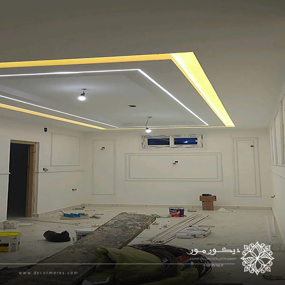 - تنفيذ أسقف جبس بورد بإضاءة مخفية تضيف بعداً جمالياً عصرياً.